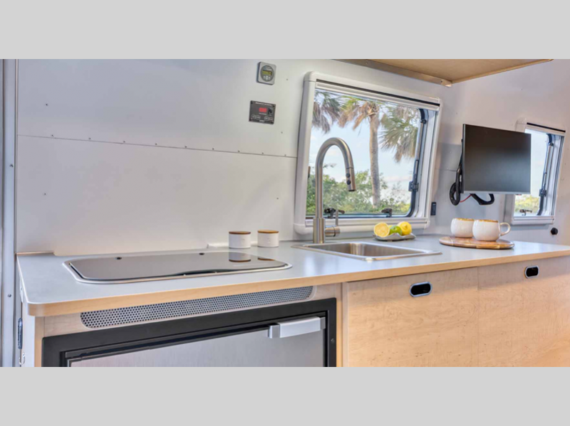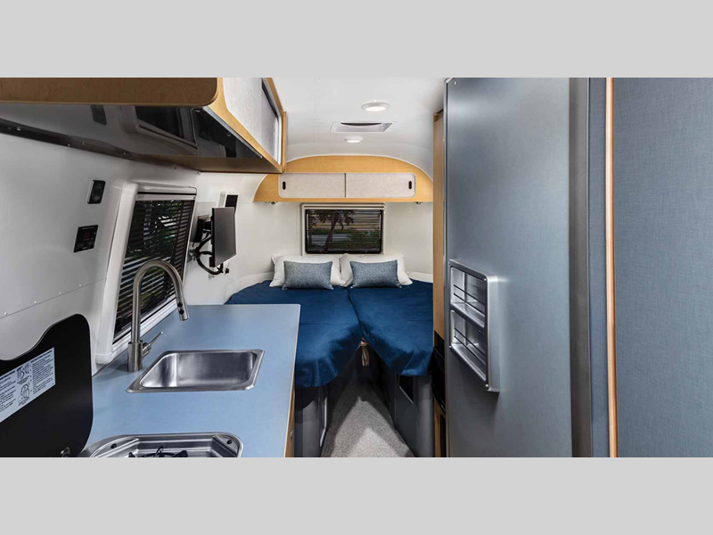 Sleeps 4 Length 22 ft 2 in Ext Width 7 ft 6 in Ext Height 9 ft Int Height 6 ft Interior Color Shoreline, Sagebrush Hitch Weight 450 lbs GVWR 4500 lbs Dry Weight 3700 lbs Cargo Capacity 800 lbs Fresh Water Capacity 19 gals Grey Water Capacity 24 gals Black Water Capacity 12 gals Tire Size ST225/75R15 Furnace BTU 14300 btu Available Beds V-Shaped Twin Beds Refrigerator Type 12V Refrigerator Size 3.1 cu ft Cooktop Burners 2 Number of Awnings 1 LP Tank Capacity 20 lbs Water Heater Type Truma Combi Eco Plus AC BTU 10000 btu TV Info 24" 12V DC HD Smart TV Awning Info Manual ZipDee w/Weathermax Fabric Axle Count 1 Number of LP Tanks 2 Shower Type Standard Similar Floorplans